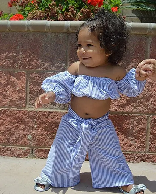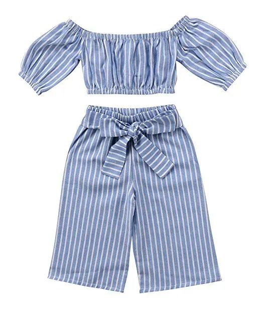 Лето 2019 международная торговля новая детская одежда полосатая трубка топ и брюки для девочек комплект