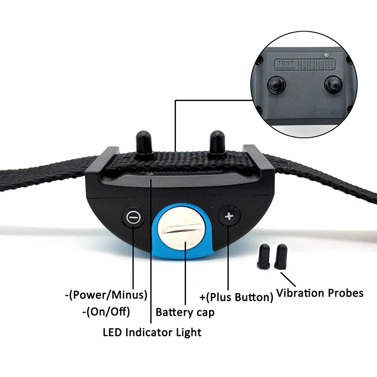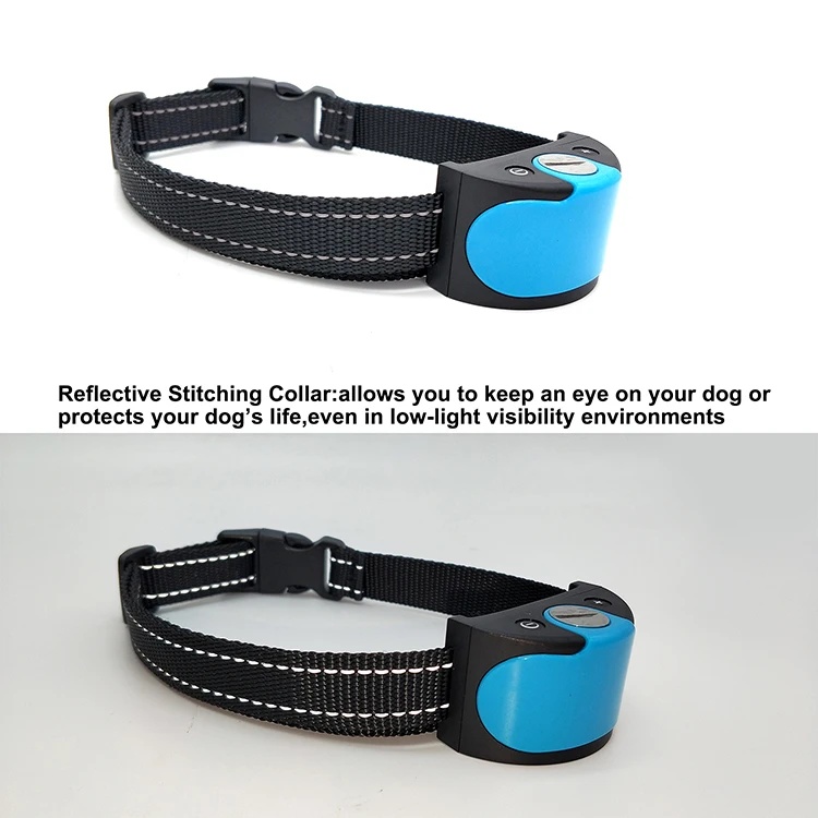 1. Easy to use and test 2. Button Control: Can be adjusted for 7 sensitivity levels 3. 1-2 times warning sound; 3-7 times sound + vibration 4. The vibration will increase by the training times 5. Enter 1 minute auto-protection mode after 7 times work continuously 6. The device is working when the indicator light is on. 7. Effective for dogs from 8-50 KG (15-110lbs) 8. High quality 2.0cm wide Black Polyester Belt with 2 reflective strips,adjusts from 20-55cm | |