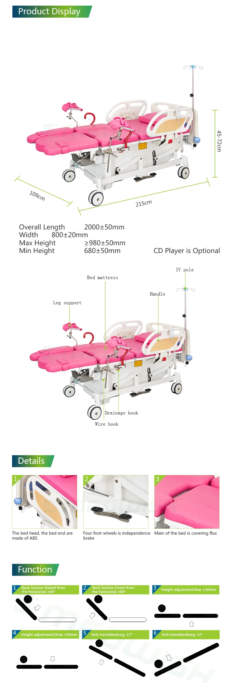 same time, we have a professional foreign trade team. Our main products include various manual and electric beds, operating