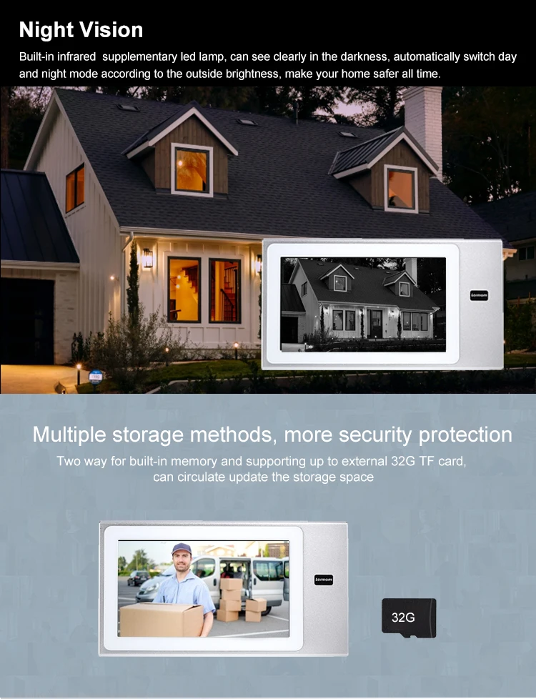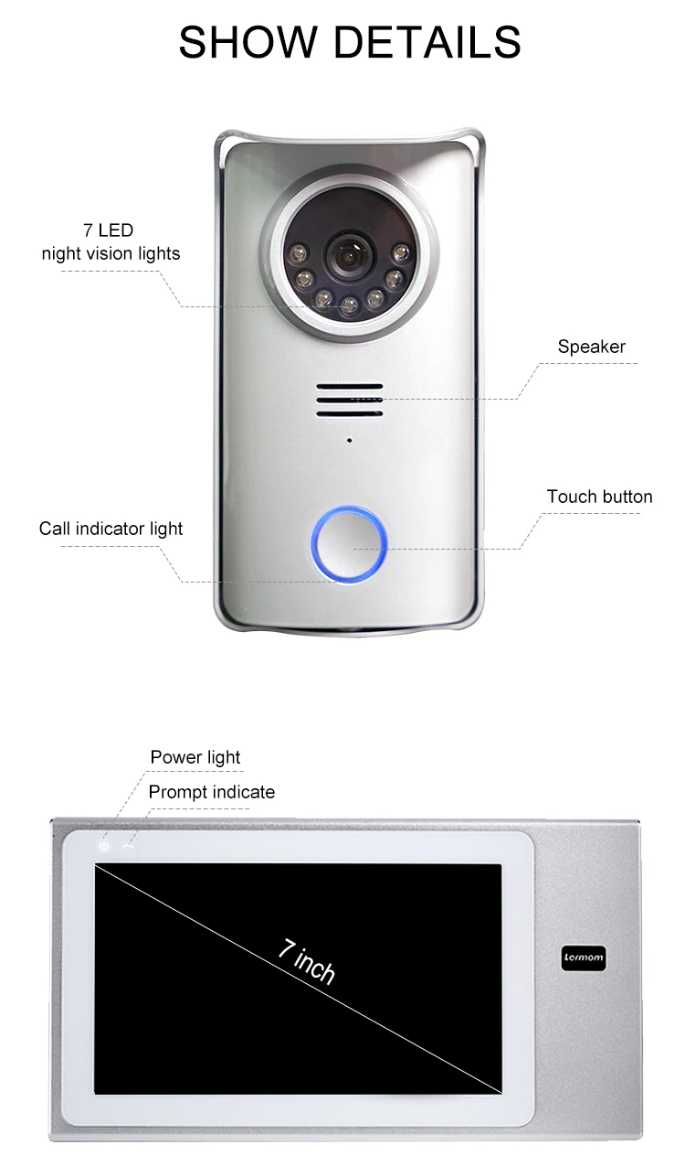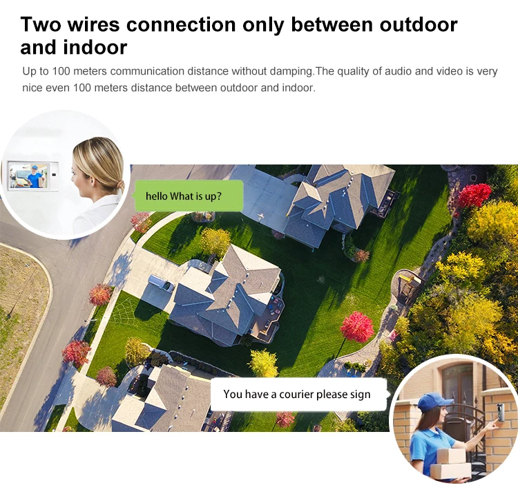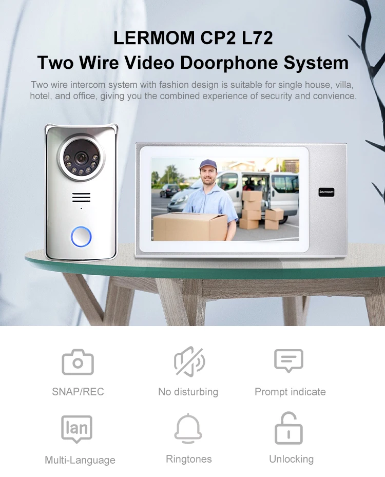 Lermom Smart security devices 2 wired video door phone long distance villa intercom system with audio