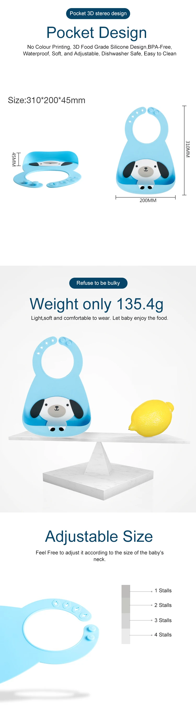 Регулируемый и простой в использовании-мы используем кнопки для регулировки и посадки нагрудников с мягким воротником вокруг шеи вашего малыша. Это так же
