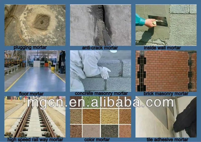The wall putty mixing equipment can produce the following dry mortars: Bonding mortar: Masonry mortar, wall and floor tile adhesive mortar, anchorage mortar etc. Decoration mortar: Decorative plaster, inner and outer wall putty, colorful decoration mortar etc. Protection mortar: Water-proof mortar, anti-corrosion mortar, self-leveling mortar, wear resistance mortar, thermal insulation mortar, sound insulation mortar, repair mortar, mildewproof mortar, shielding mortar etc.