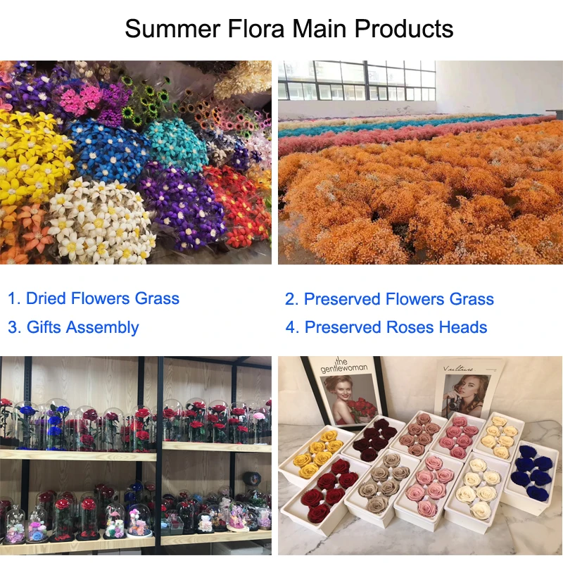 We have our long term cooperated factory for the dried flowers and preserved fresh flowers , all the flowers we exported is A grade flowers .Our R&D Team can design for the best flowers according to customers' requirements . One week we can produce 4000-5000pcs flowers .