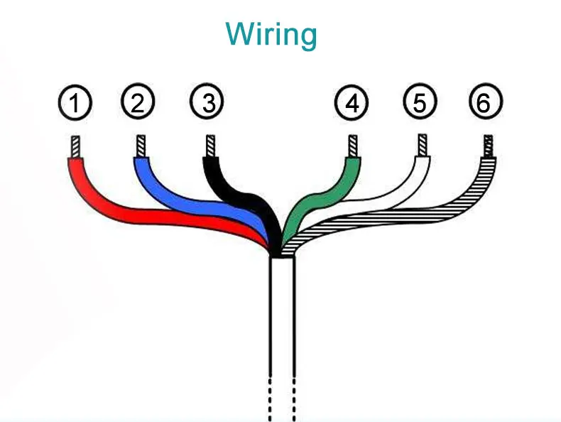 1- Red | Power supply V+ | Red Purple Yellow Orange pink | Power supply V+ | ||