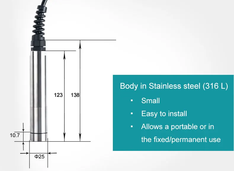 Weight | Stainless steel version 450g (sensor + cable 3 m) |