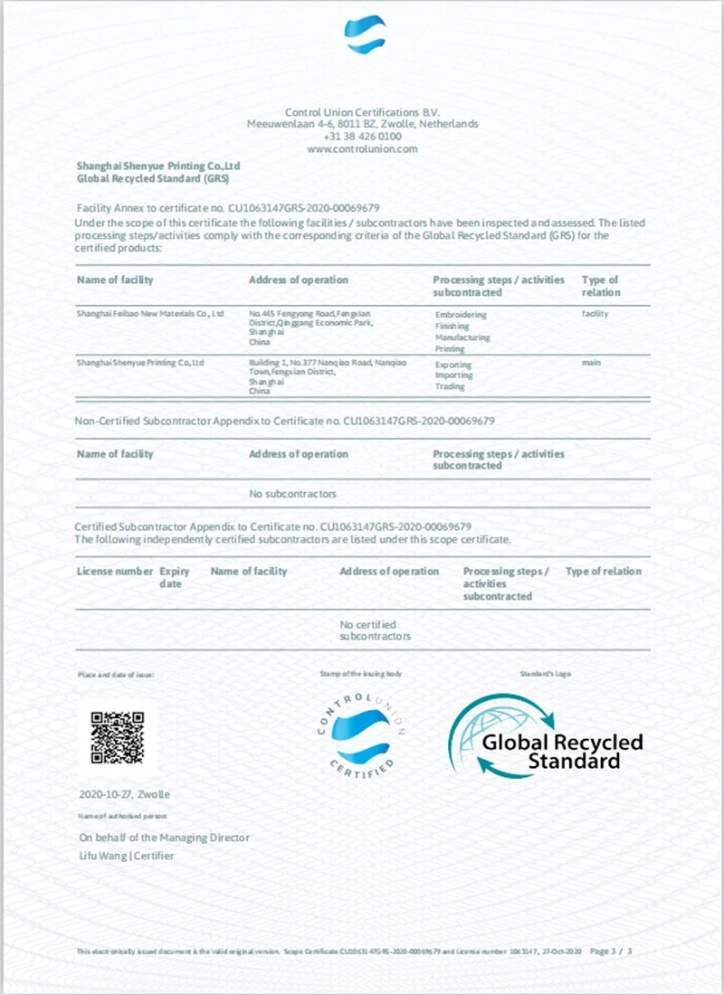 4. Certification: SGS