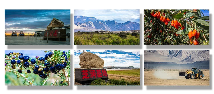 Self-owned organic plantation, 2000 ha.“SUMI Mountain Villa" located at the foot of Mountain KUNLUN in Tuolahai desert area of Gomud City, west of Qinghai Province, where average altitude over 380 meters, strong sunshine, rare water, big temperature difference between day & night, all these guaranteed the quality of the goji berry here are top quality, contacts highest proportion of polysaccharide or anthocyanin.