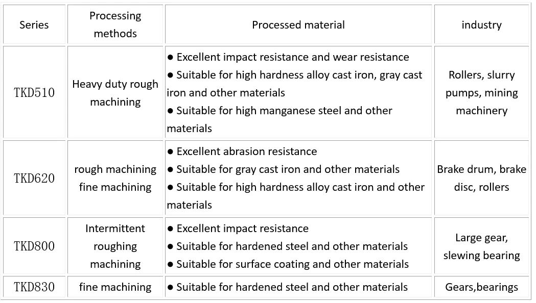 advantages specific for ultra-high hardness heavy-duty cutting, cast iron high-speed machining, etc.