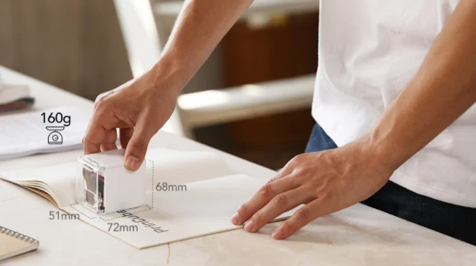 Эргономичный дизайн позволяет легко печатать одной рукой и всего 160 г (включая картридж для печати), что самый легкий принтер доступен сегодня.