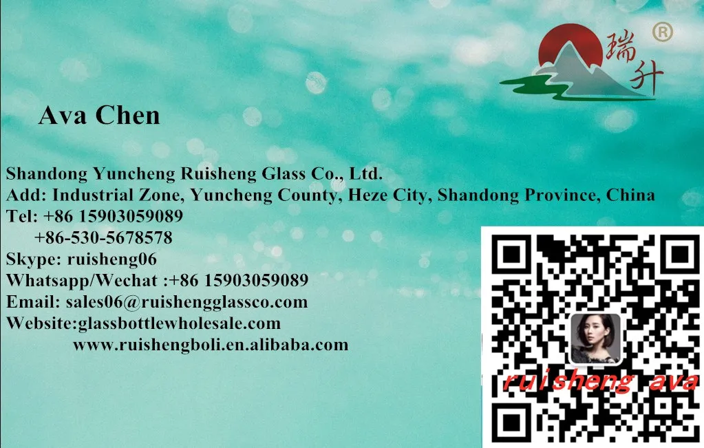 Advantage | I). With10 years experience in glass bottles manufacturing II). High grade transparency, low rate of breakage. Smooth surface, no bubbles, no wrinkles III). Even with thick bottom, the color is also very pure. IV). Low price but reasonable. V). Mold cost can be refunded for 50,000pcs order VI). Quick samples for custom order, the sample can be finished within 15days. VII). If any brocken bottles during the transportation, there will be a compensation for next order. VIII).We have passed the SGS,TUV,ISO9001,ISO14001 and other tests. VX).Customer can get one-stop service from Ruisheng |
