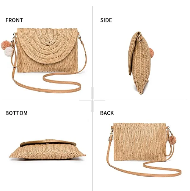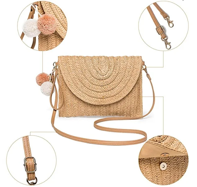 *Name | Factory Fashion Pom pom Straw Shoulder Bag Straw Clutch Women Handmade Straw Crossbody Bag Summer Beach Envelope Purse Wallet | |