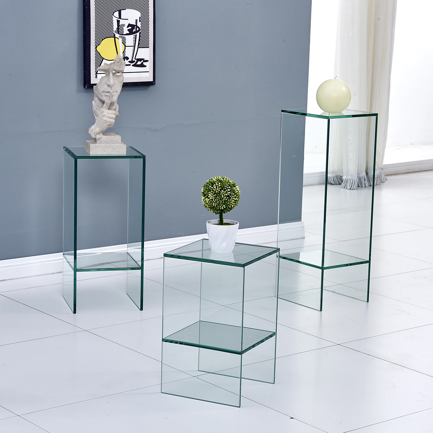 This Coffee /Center Table is made by 10mm transparent common glass , possess their own advantages, environmental friendly, light and preferential