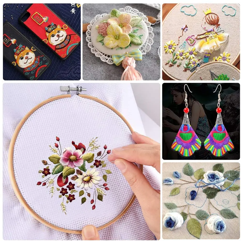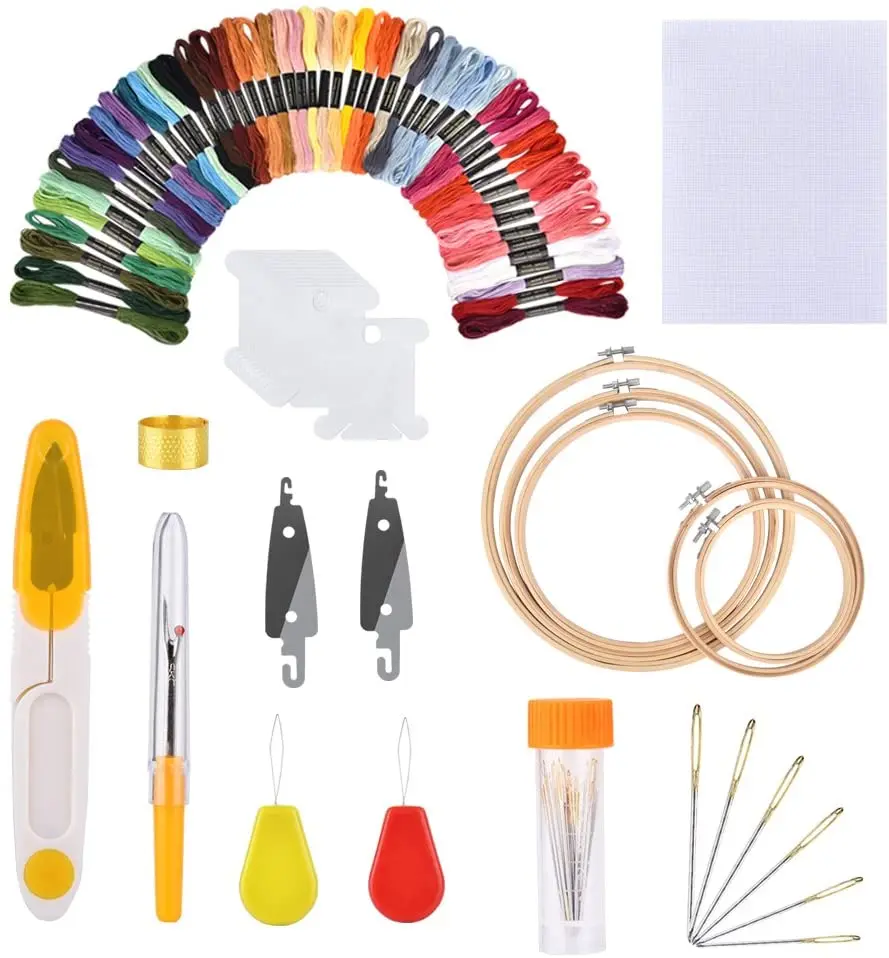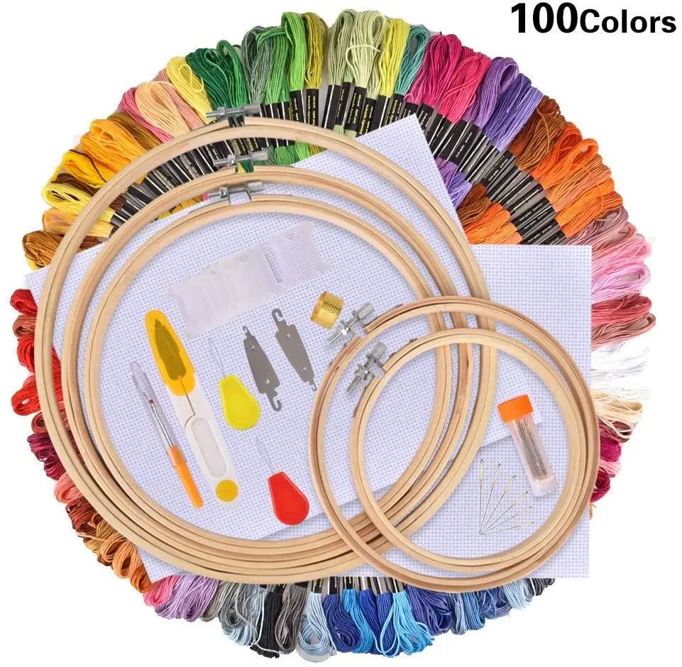 Beginners Circular Packing Bag Bamboo Embroidery Hoop threads Sewing Pins Embroidery Starter Cross Stitch Tool Kit | |