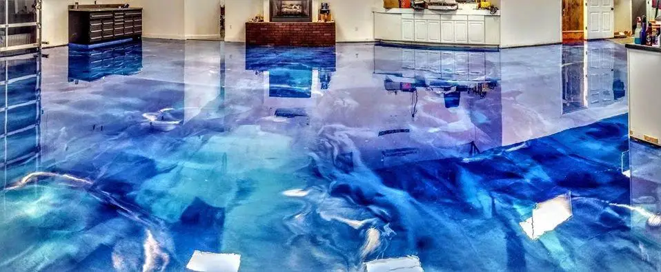 Metallic epoxy floor coatings are a hot new trend that is slowly finding its way into the home as a very high tech and exotic looking flooring option. These coatings create a glossy and deep looking floor with a variety of different colors and visual effects. Some even create a beautiful three-dimensional appearance that gives the illusion of craters, ripples, and swirling rivers of metallic looking plasma.