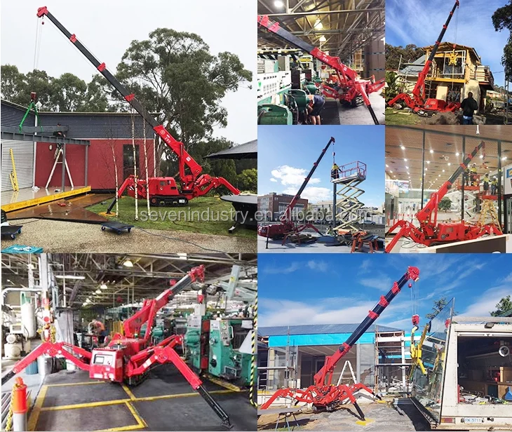 Кран-паук имеет излишки номинальной нагрузки, но может работать в течение длительного времени. Крана является прочным и может легко завершить свою работу даже в суровых погодных условиях. Предотвратить неправильную операцию дизайном безопасности, защита от перегрузки, удобно для оператора, чтобы легко завершить платформа для подъемных работ.