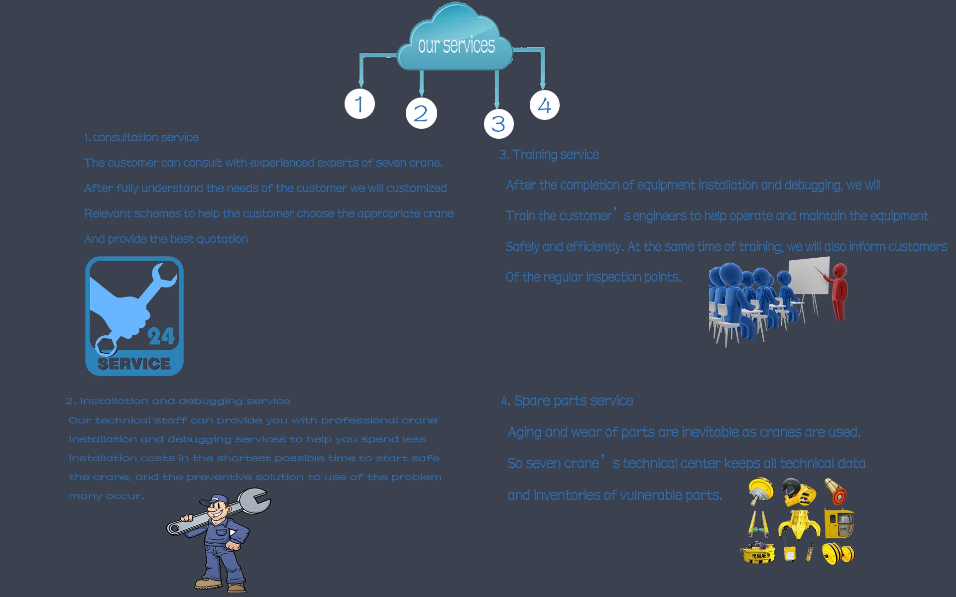 Sevencrane стремится к максимальной эффективности, лучшим результатам и отличному обслуживанию, выбирайтеSEVENCRANE, чтобы дать вам душевное спокойствие.