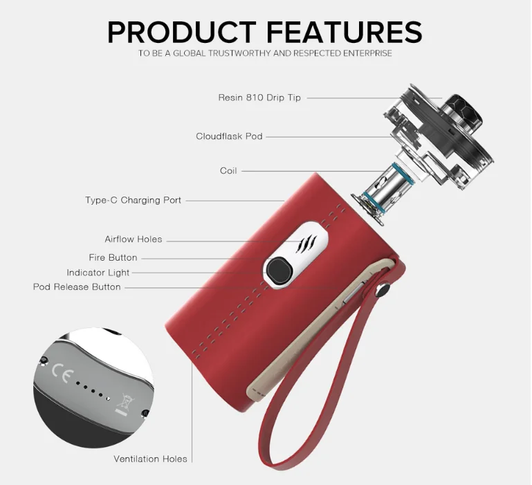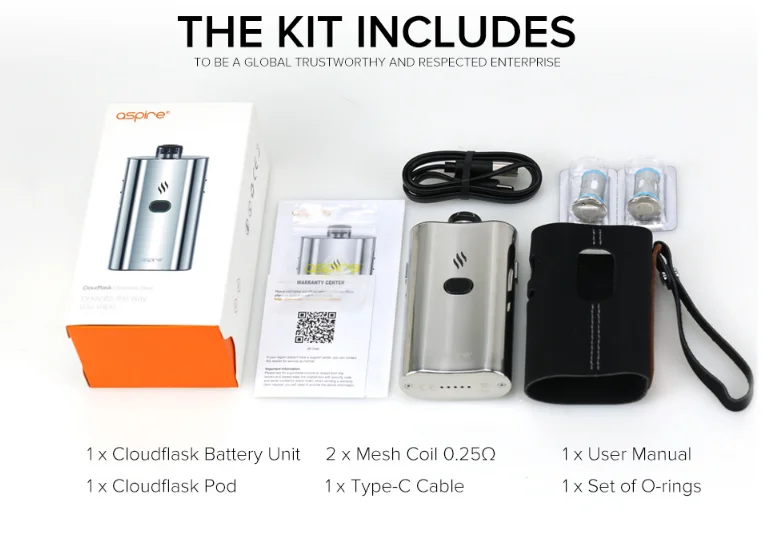 Removable Cloudflask pod system which can easily remove the entire pod unit and coil when squeezing the release buttons on each side. Another feature is the pull-and-push coil replacement system which can make you change the coil conveniently even when there is e-liquid inside the pod(less than half of the pod’s capacity). What 's more,it has a 2000mAh built-in battery and supports 2A Type-C quick charging to satisfy your daily vaping.