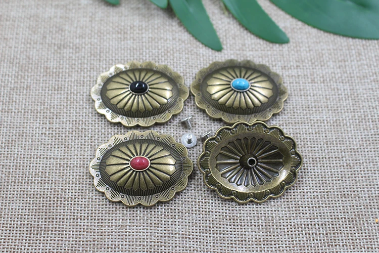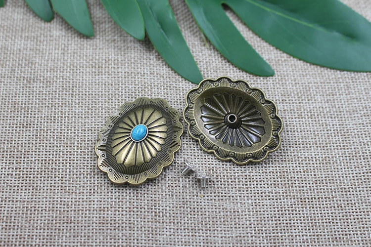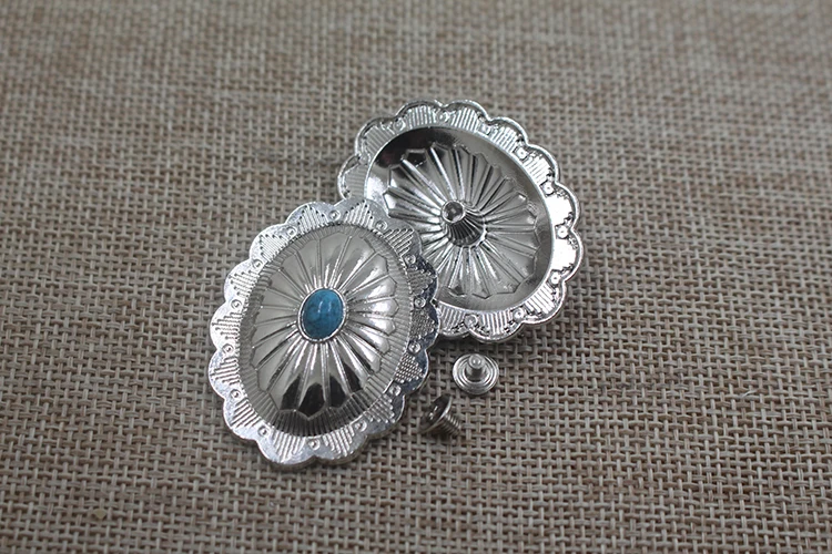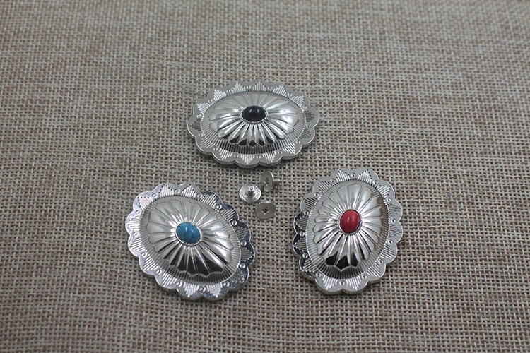 New design wholesale western leather decorations turquoise oval conchos for belt