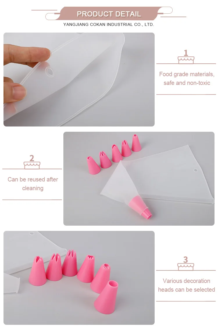 Product Name | Silicone piping bag with 6pcs tips |