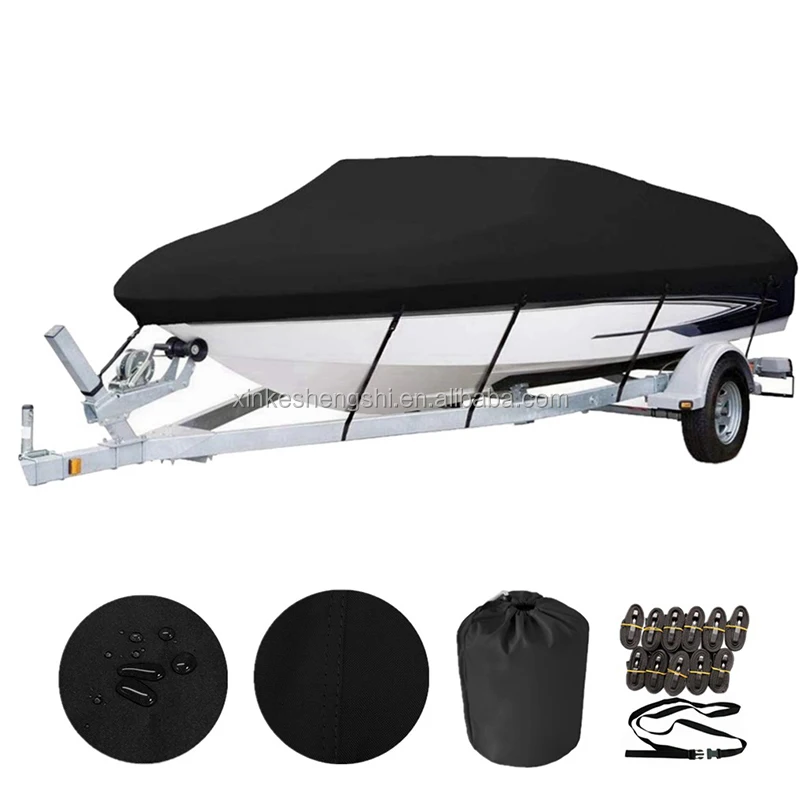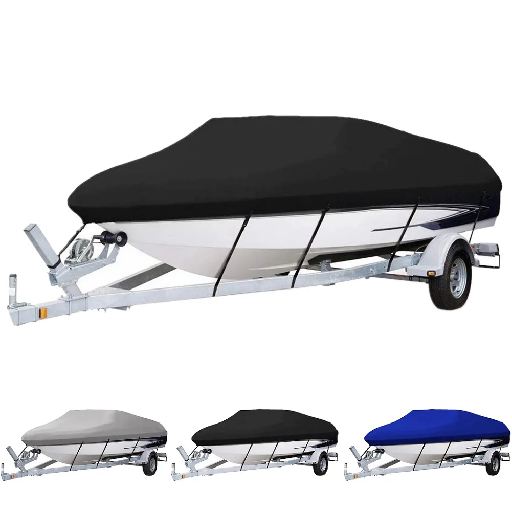 * [FULLY WATERPROOF BOAT COVER] Made of heavy duty marine grade 600D Oxford fabric with double PVC coating, which can withstand up to 2000 Pa water pressure. Double stitched seams with straps reinforced to decrease water entering from the stitching -Never worry about the cover being easily torn and leak