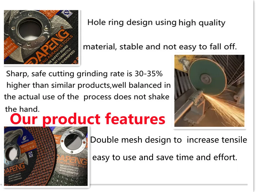 3.Use superior quality abrasives,fiberglass nets and BF-phenolic resin .