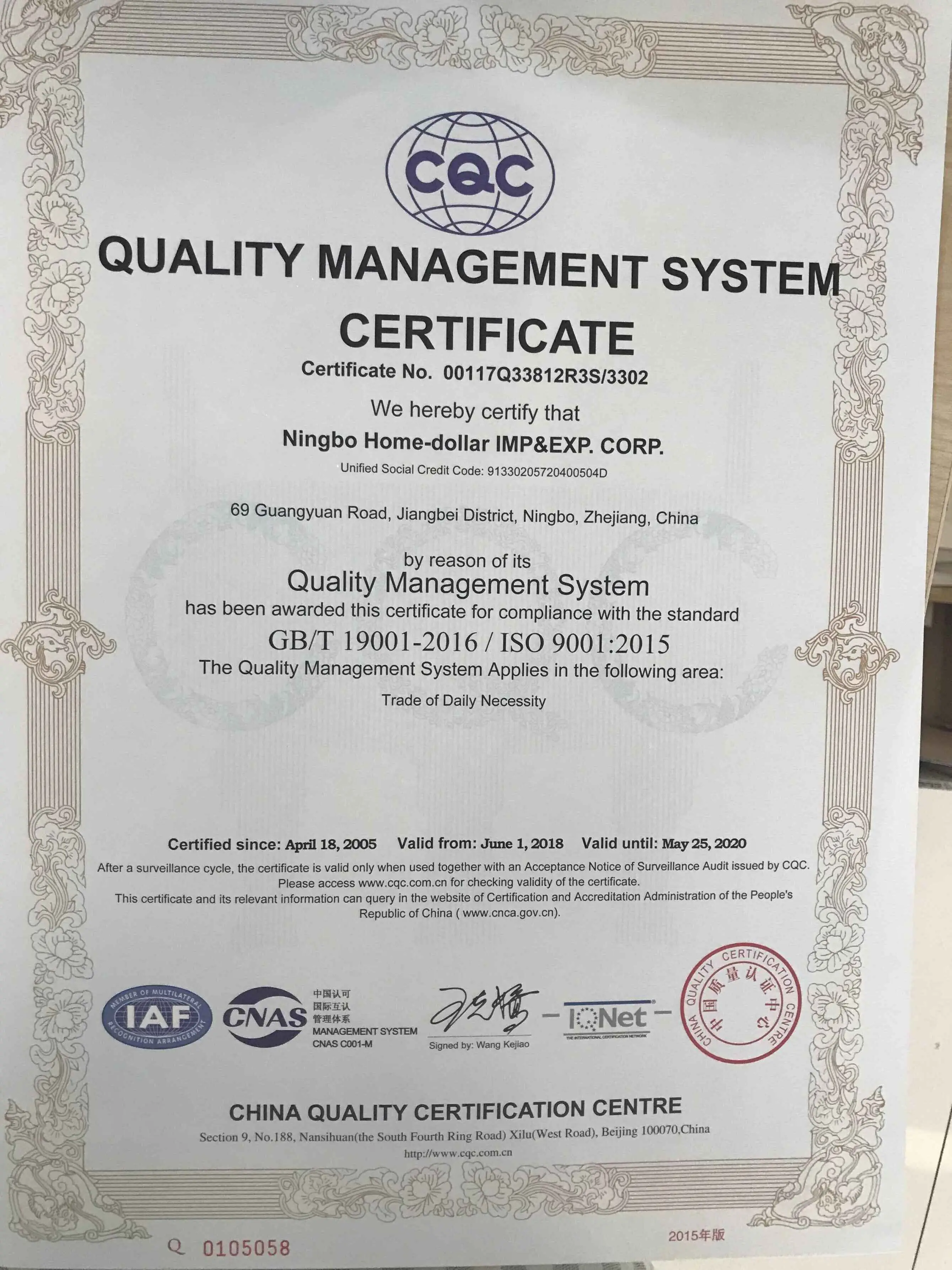 Ningbo Home-Dollar Imp.& Exp. Corp. was founded in 1997 with its own exporting brand:"Home-Dollar".The company covers a total area of 55,000 square meters, with 19,000 square meters for office, 6,000 square meters for showroom, and 25,000 square meters for the warehouse .The new building covers an area of 25,000 square meters with 15 floors above ground and 1 underground parking lot.