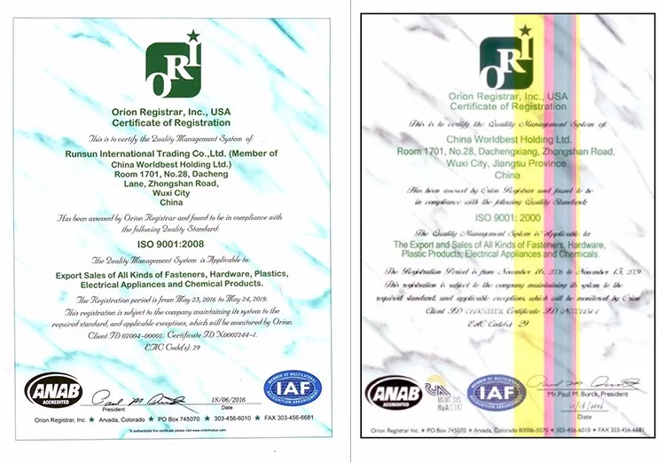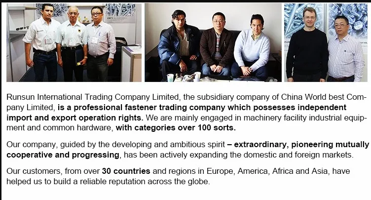 Founded in 2005, Runsun International Trading Company Limited (Member of China Worldbest Holding Ltd.) is a privately held and full-line distributor of fasteners to some of the world’s largest importers and manufacturers. By providing over one thousand sorts of machinery devices, universal hardware and customized products, the company has evolved from a small storefront to an international organization.