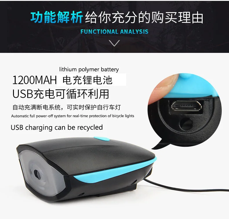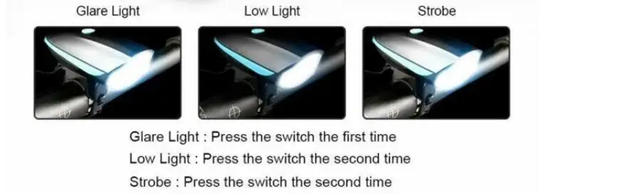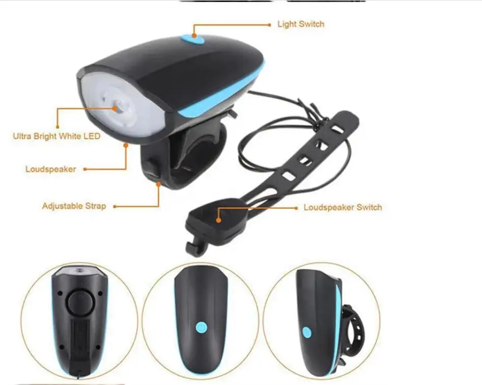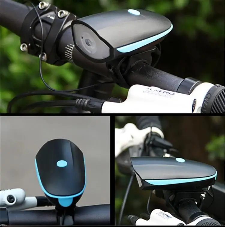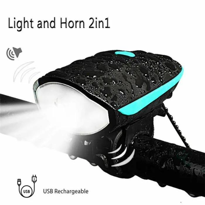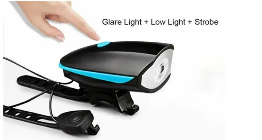 [5 звуков рога] велосипедный передний свет и рога 2 в 1 дизайн. Рог может издавать предупреждающий звук до 140 дБ, и долго нажимать кнопку рога, он изменится на другой звук, есть 5 звуков на выбор.