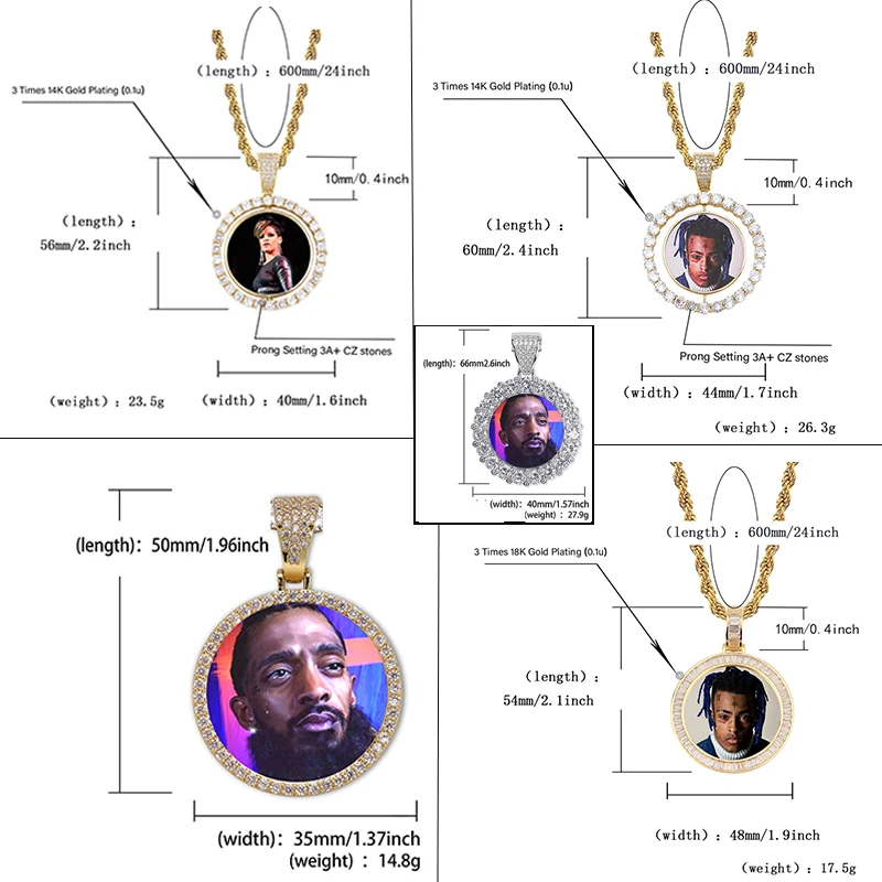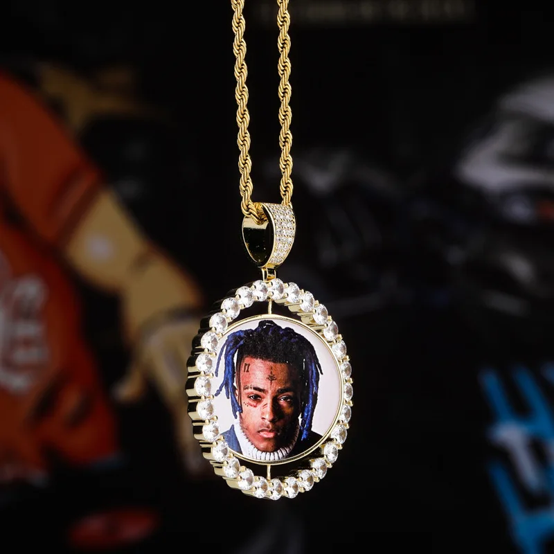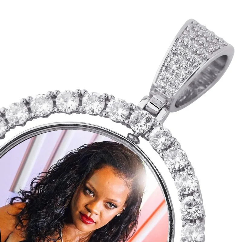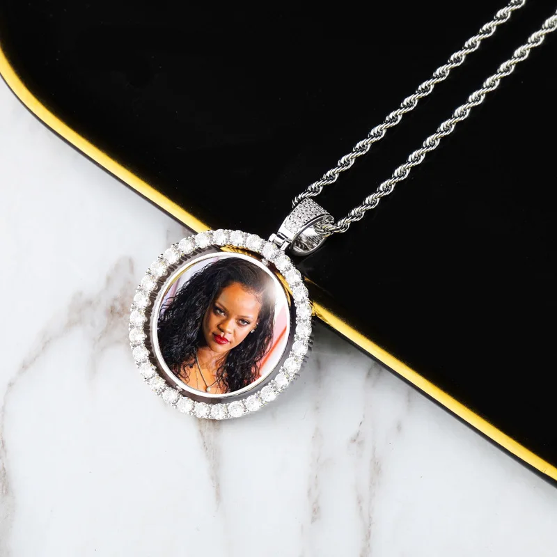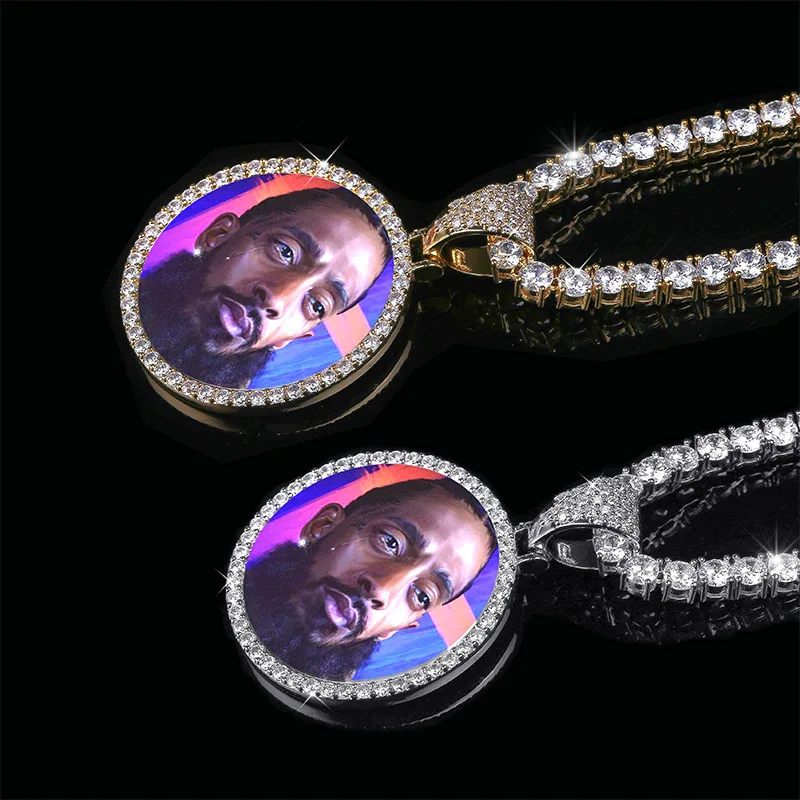Custom Round Gold Iced Out Pendants Hip Hop Necklace Custom Photo Locket Picture Pendant Photo Pendant with Picture | ||||||