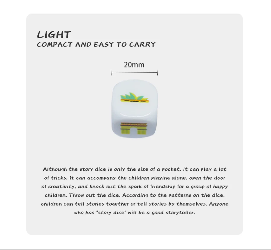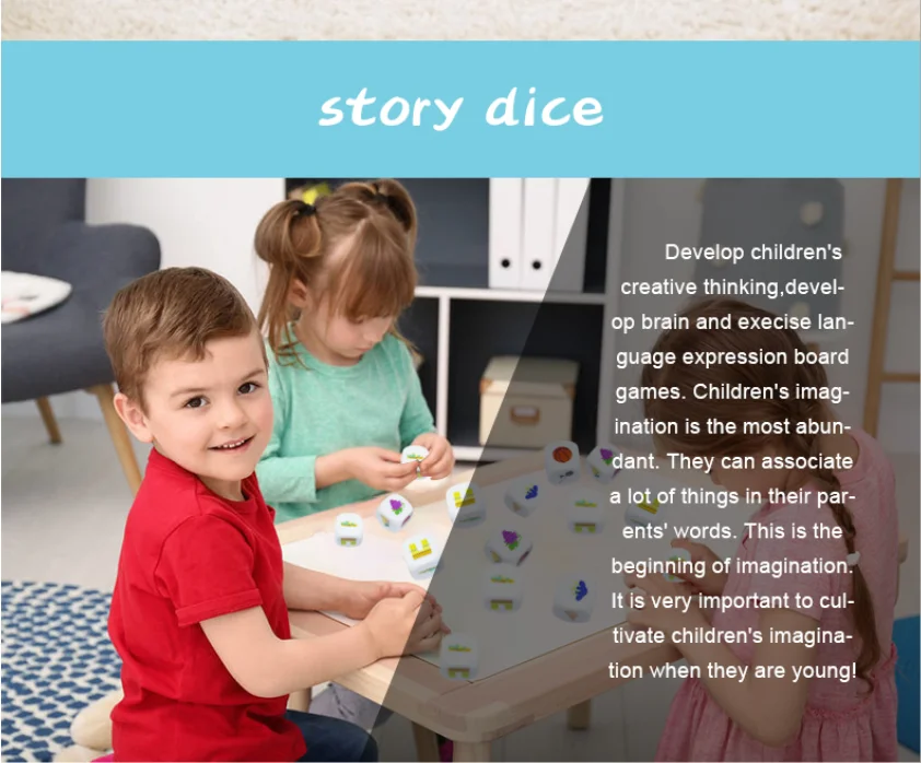 Story dice ,educational toys. Develop children's creative thinking , develop brain and exercise language expressions for board games.