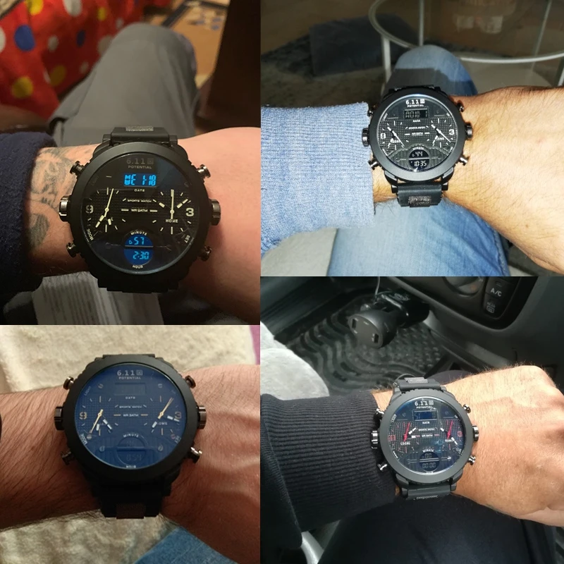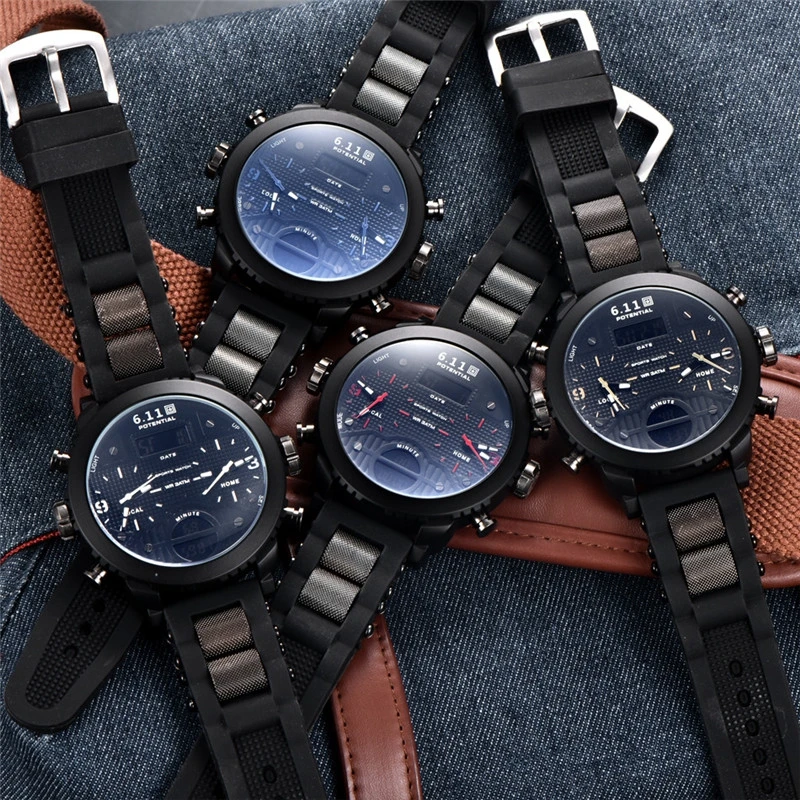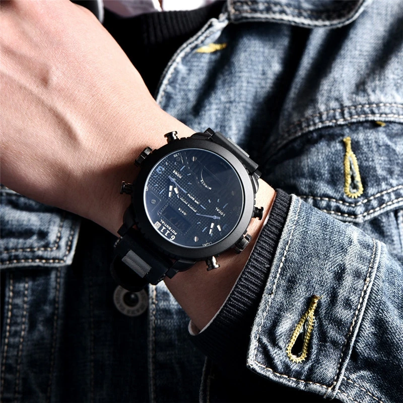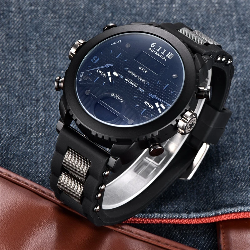 Новые мужские часы, наручные часы, спортивные кварцевые мужские часы с двойным дисплеем, водонепроницаемые уличные часы с несколькими часовыми поясами