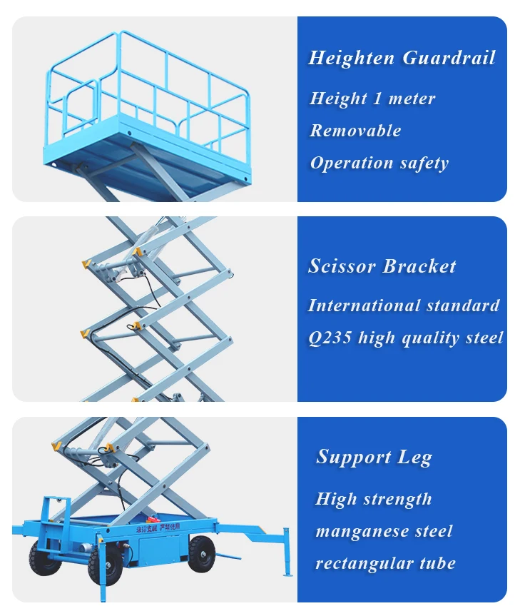 Model | Lifting height(m) | Capacity(kg) | Table size(mm) | Power |