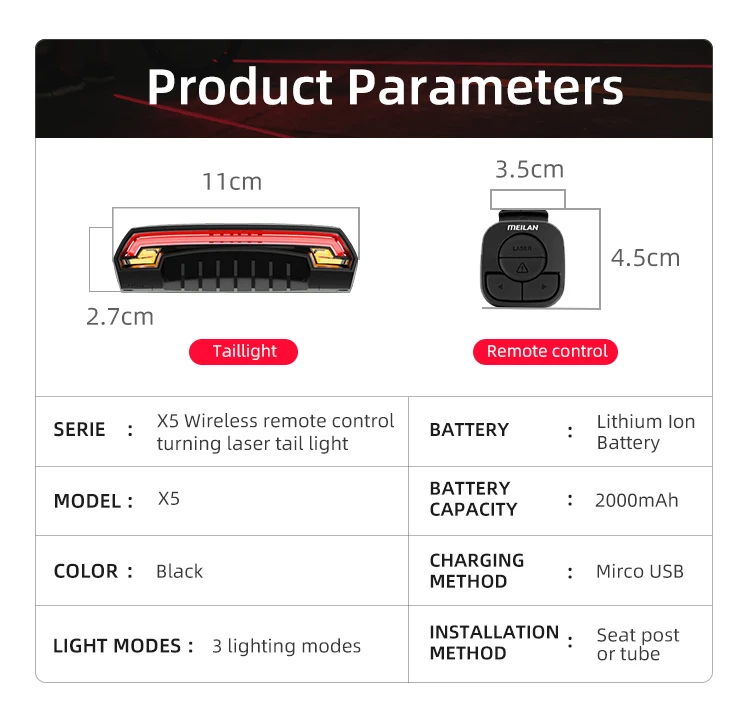 This bicycle rear light turn signal light smart rear light product is designed and produced by MEILAN Team and is the MEILAN patented product.