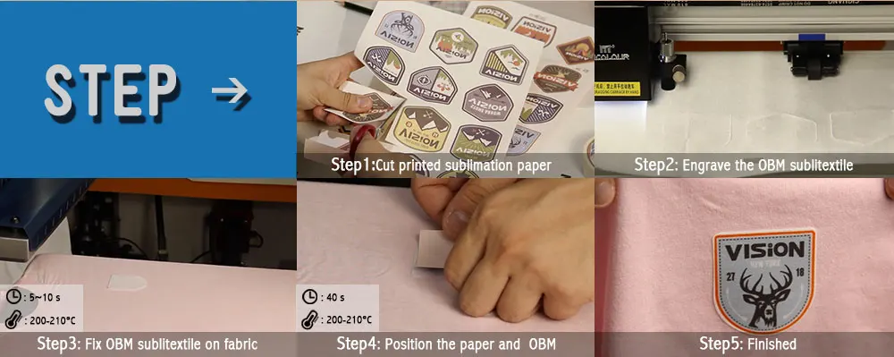 Instruction | Step 1:From OBM to Tshirt Temp:210℃ Time:5-10s Step 2:transfer printed sublimation paper to OBM Temp:210℃ Time:40s | ||||||