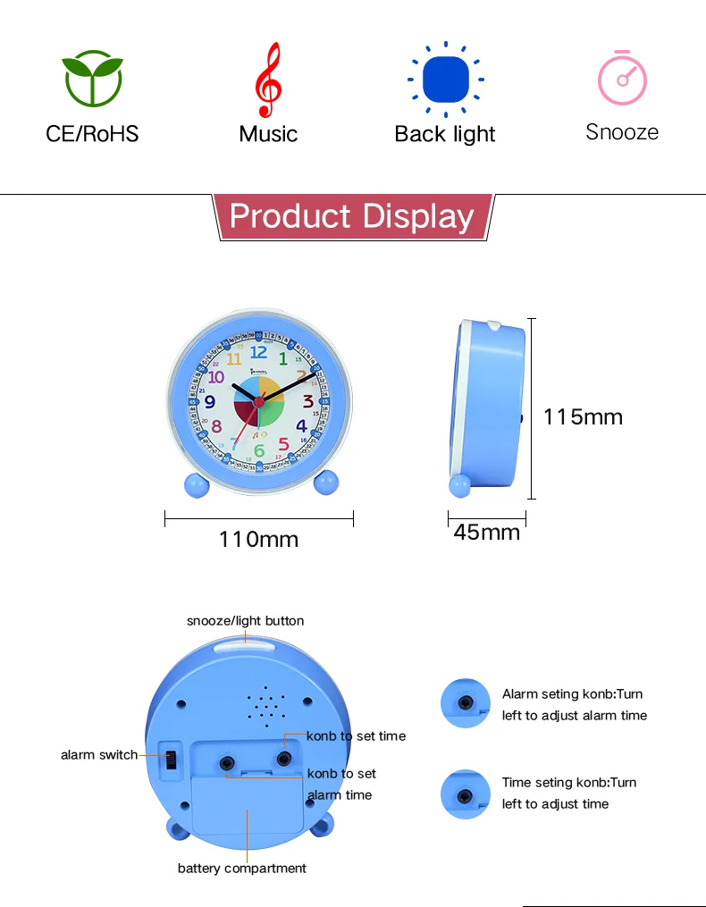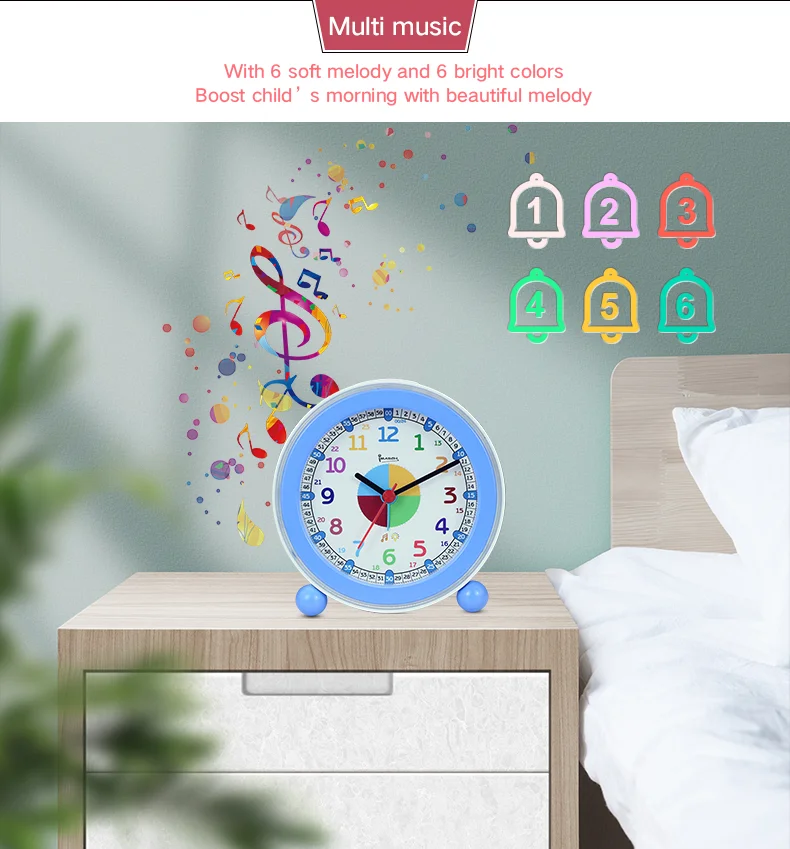 Special design for kids alarm clock, easy to read time