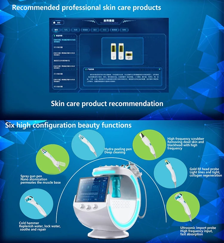 Features1) All-in-one: This product integrates skin detection, customized beauty solutions, product launches; basic beauty care, cuticle keratin cleansing, deep cleansing, Deep hydration and nourishment, anti-aging maintenance, sedative maintenance and other functions are all in one. One machine has multiple functions and the market demand is great.