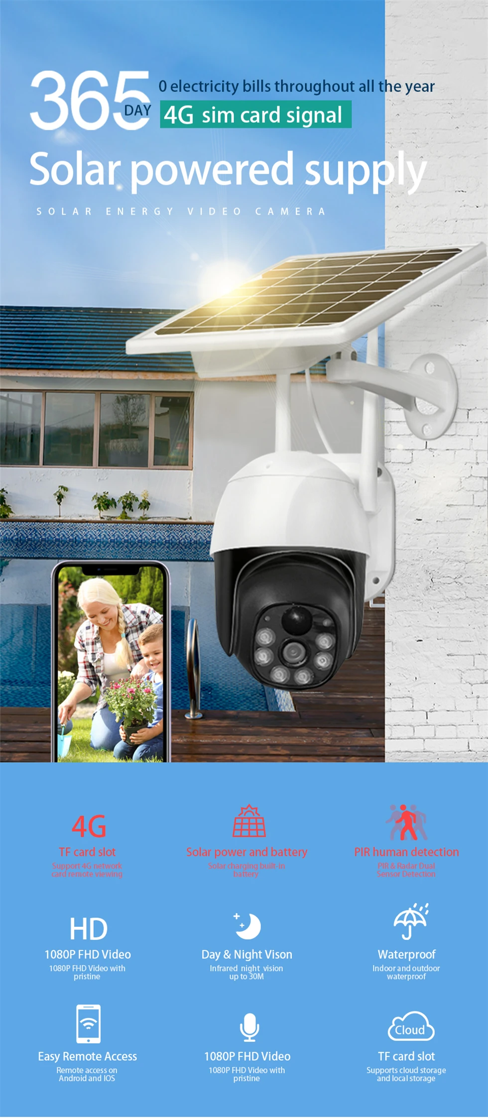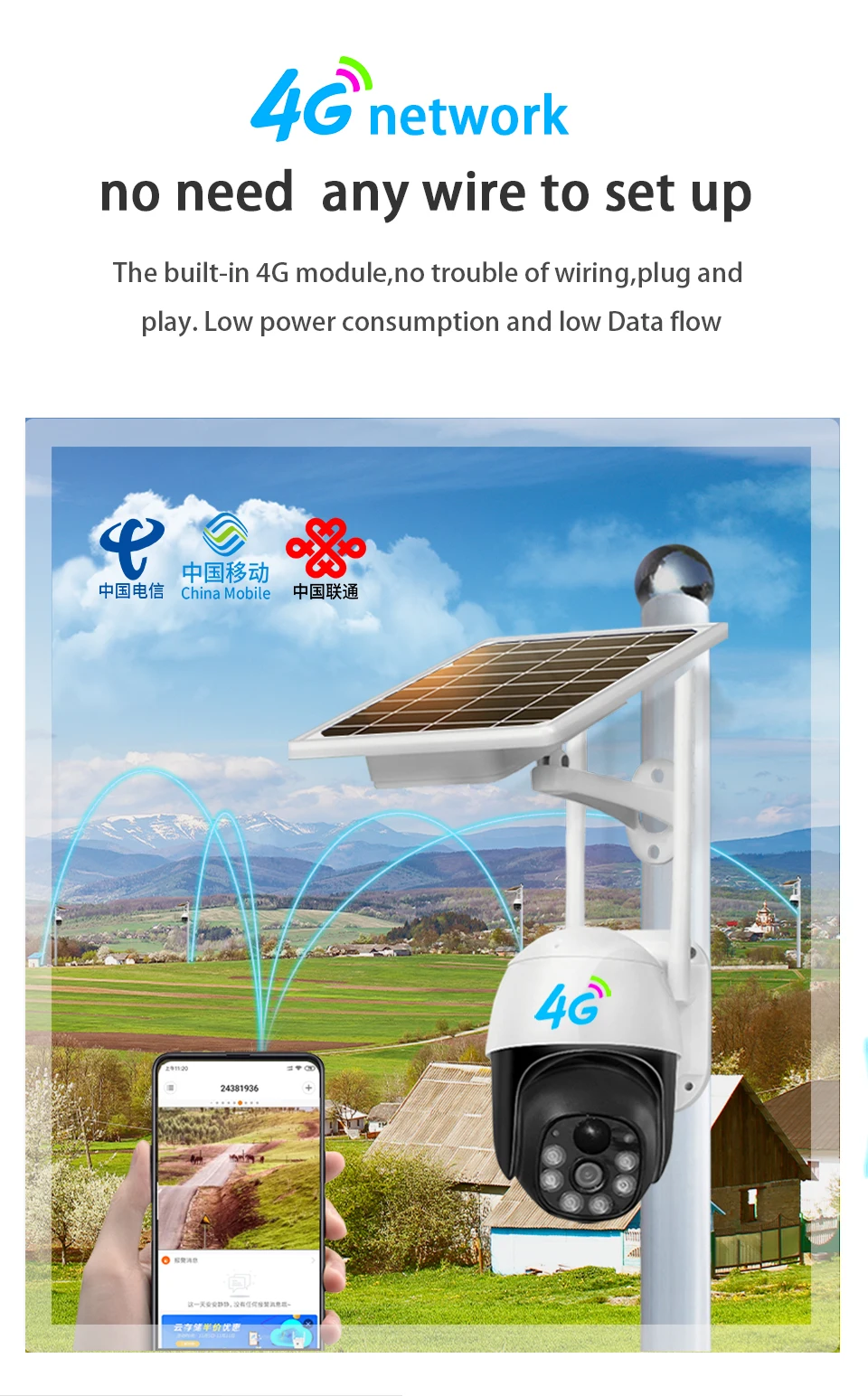 Product name | 4G solar power outdoor camera Waterproof low power consumption camera solar panel for camera | ||