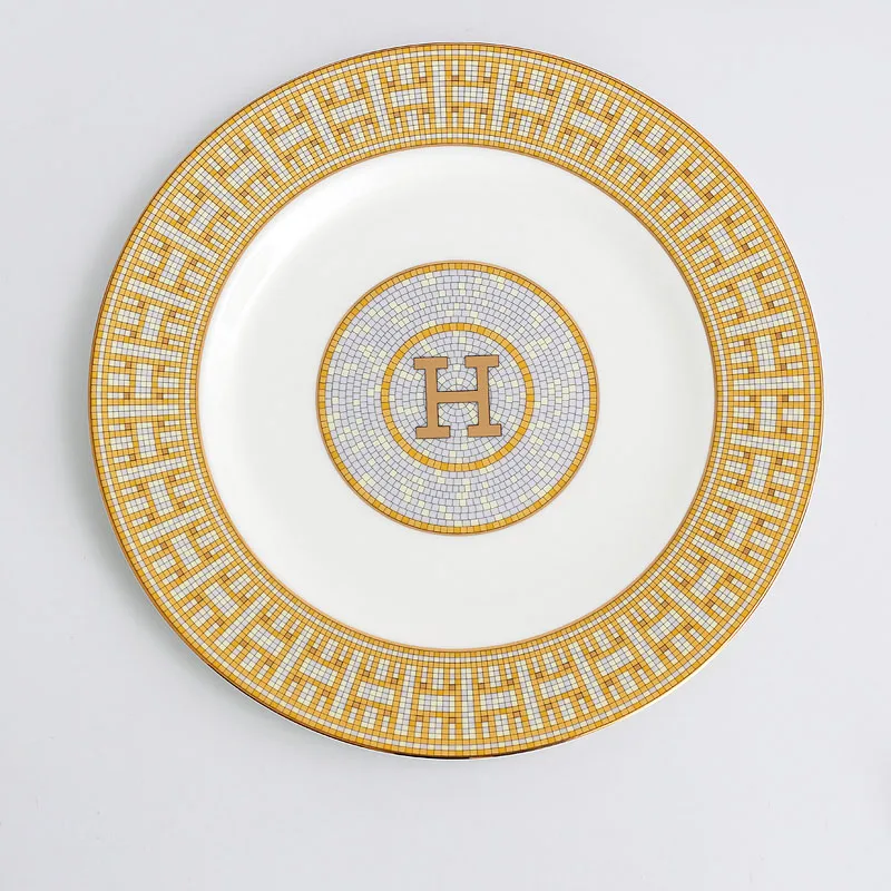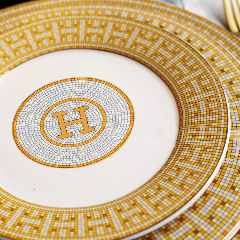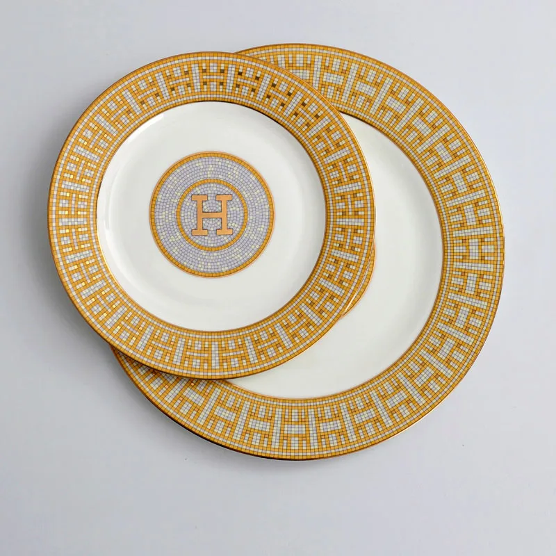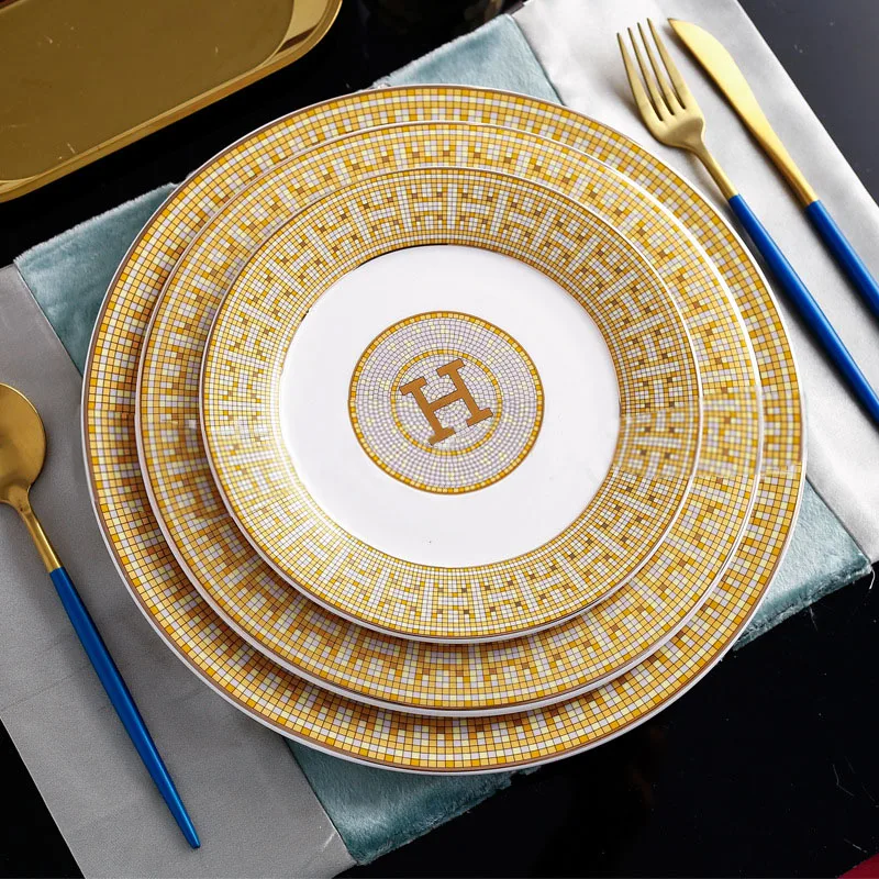 Wholesale Bone China Plate Set Round Gold Design Porcelain Ceramic Charger Plate