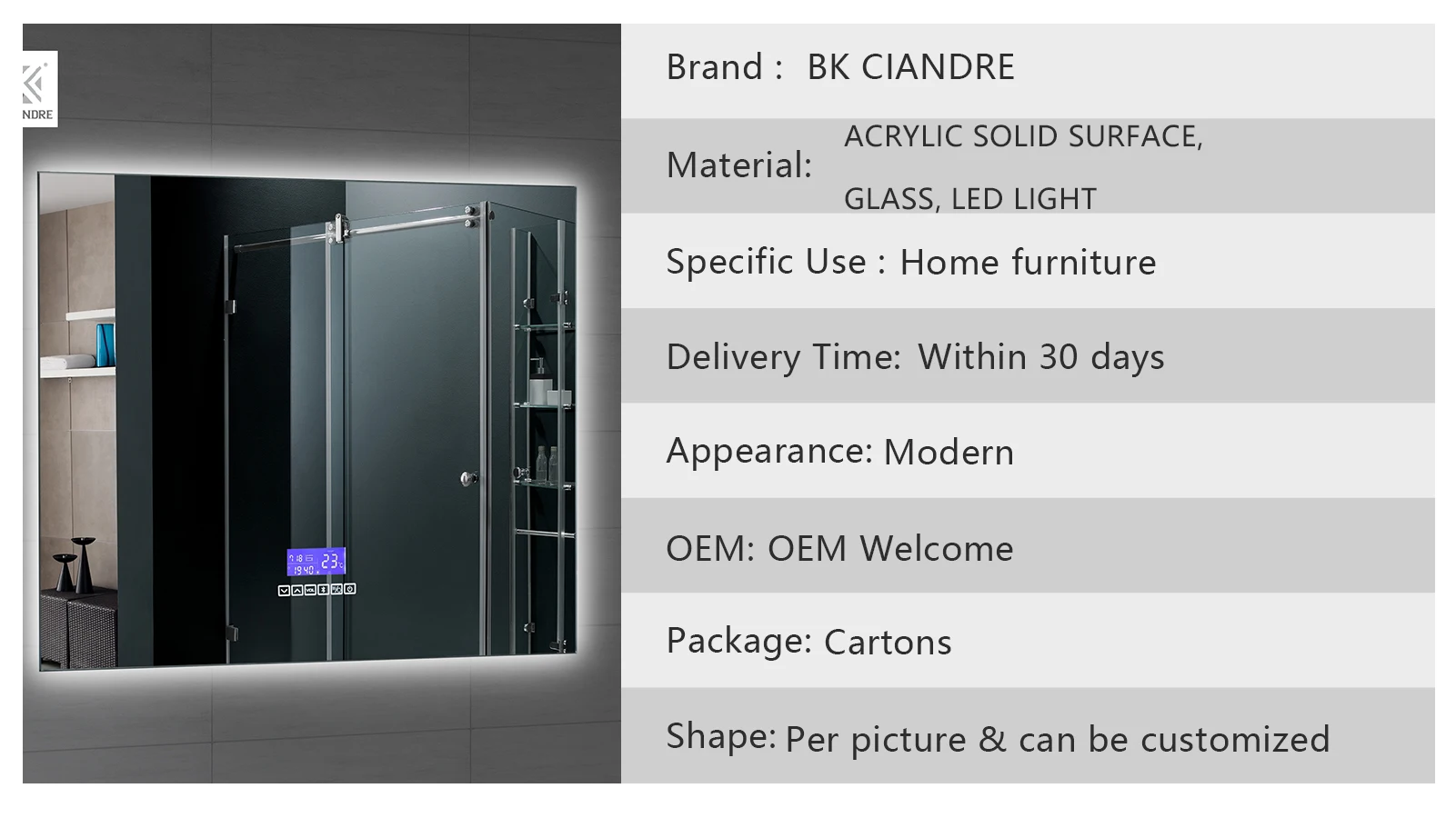 Умное зеркало M1 для ванной комнаты с сенсорным и голосовым управлением 21,5 дюйма US $610.00-$850.00