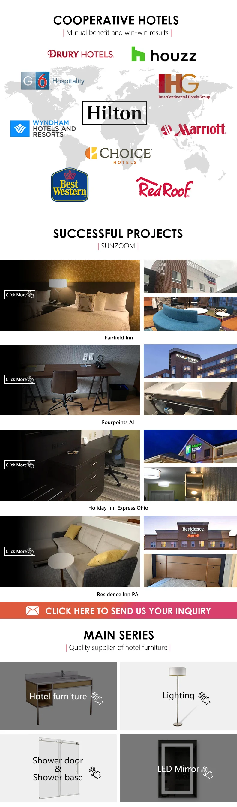 - Yes, we supplied a lot to Hilton, Marriott, Holiday inn, Hampton, IHG, Hyatt, Choice Hotel etc.