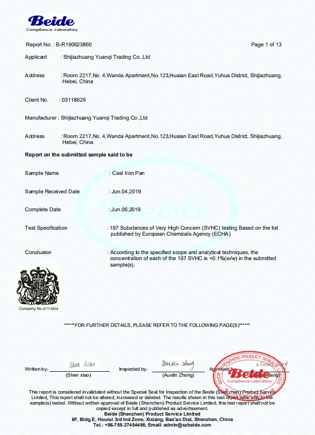 Shijiazhuang Yuanqi Trading Co., Ltd. is a professional production and processing company of cast iron pot, cast iron baking pan, enamel stew pan, frying pan and other products, with a complete and scientific quality management system. integrity, strength and product quality has been recognized by the industry.