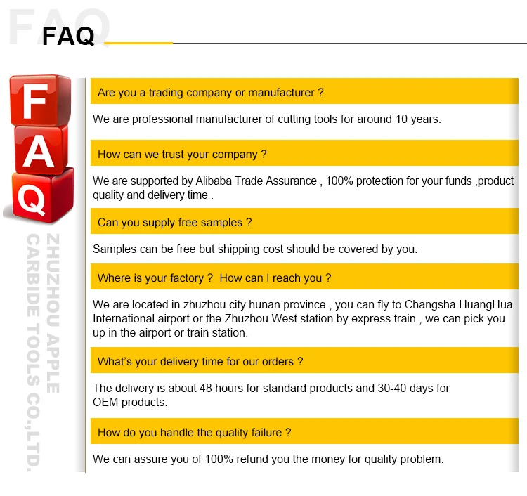 1. Sharp and strong cutting edges. 2. PVD Coated surface provides a higher metal removing. 3. High wear resistance and toughness 4. Efficiency and profitability get a 30% higher.