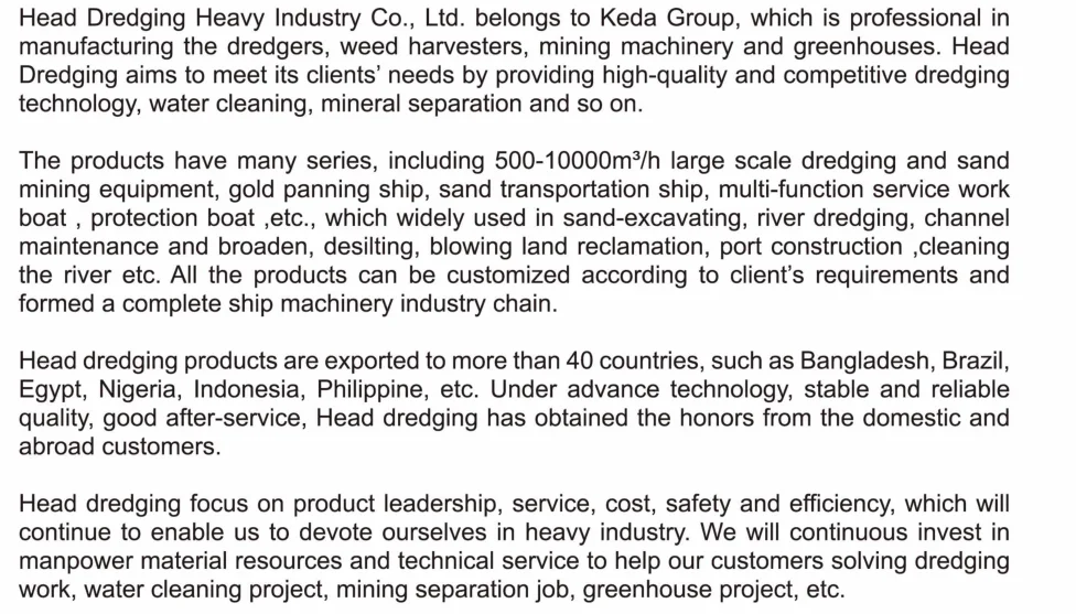 We provides training on each dredge when it is delivered and commissioned. Additionally, customers will receive classroom