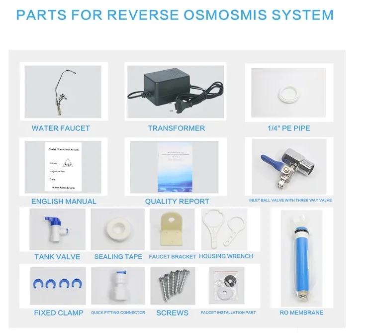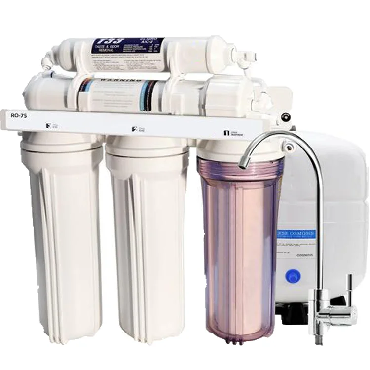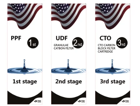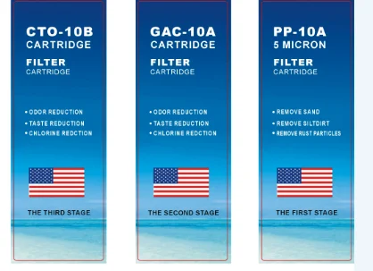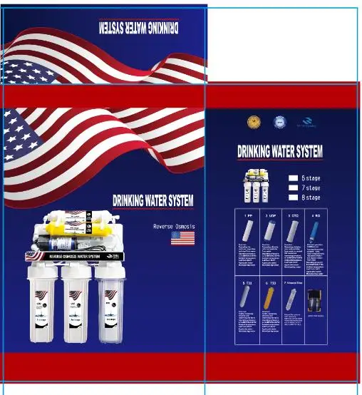 first stage-pp sediment filter(5um) (10inch) second filter- GAC filter (10inch) third stage:CTO filter(10inch) fourth stage:400gpd RO membrane fifth stage:t33 post carbon filter | ||||||||