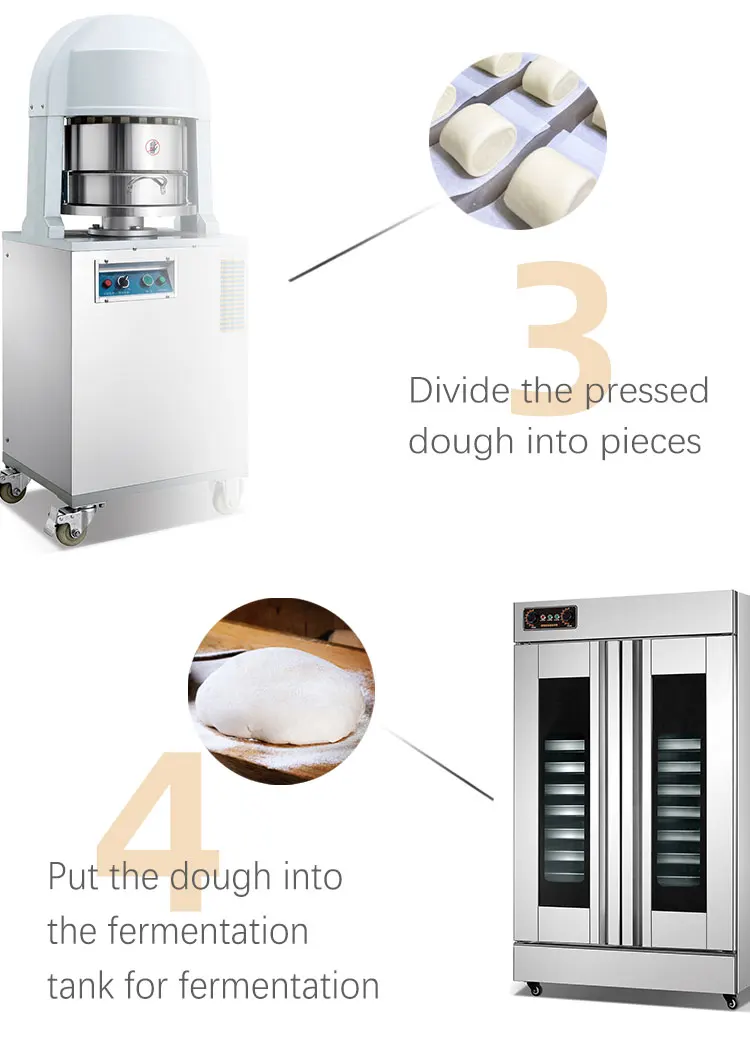 Features | 1.Bread splitting machine, evenly divided, the dough is not sticky, safe to use, meet the requirements of different dough weights, and efficient and hygienic; 2.Dough divider machine reasonable design, even split, effectively improve work efficiency, split non-adhesive, safe, can divide dough, moon cake filling, etc, each piece weight from 30 grams to 120 grams, designed to provide consistent dough weight sexual and reasonable. Multiply. | |||||||