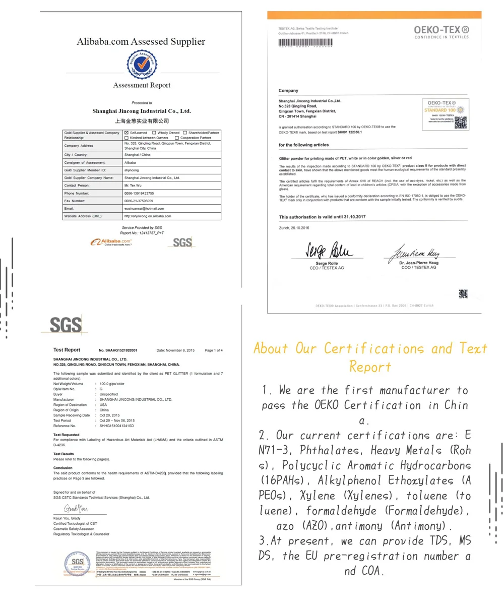 7.CERTIFICATIONS?EN71-3 , ROHS , 16PAHS , APEOS , PHTHALATES , XYLENES , TOLUENE, FORMALDEHYDE, AZO , ANTIMONY , TDS , MSDS , COA