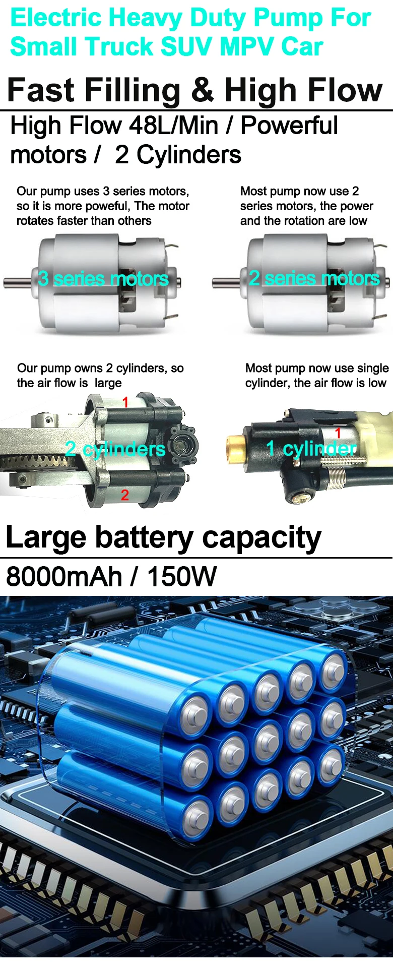 Application | 1, Auto: Car, SUV, Motor home, RV, MPV, Small truck, Min bus, Camper, Jeep, Pickup,Bike, etc 2, Balls: Volleyball, basketball, football,gym ball 3, Toys: Swim ring, balloon,inflatable swimming pool,inflatable wall,etc. 4, Furniture:inflatable sofa, inflatable bed, etc, 5, Hardware tools: Pneumatic nail gun, Pneumatic Painting Spray Gun (with quick connector air pipe), DIY pneumatic tool 6,Outdoor products:inflatable boat, inflatable tent |