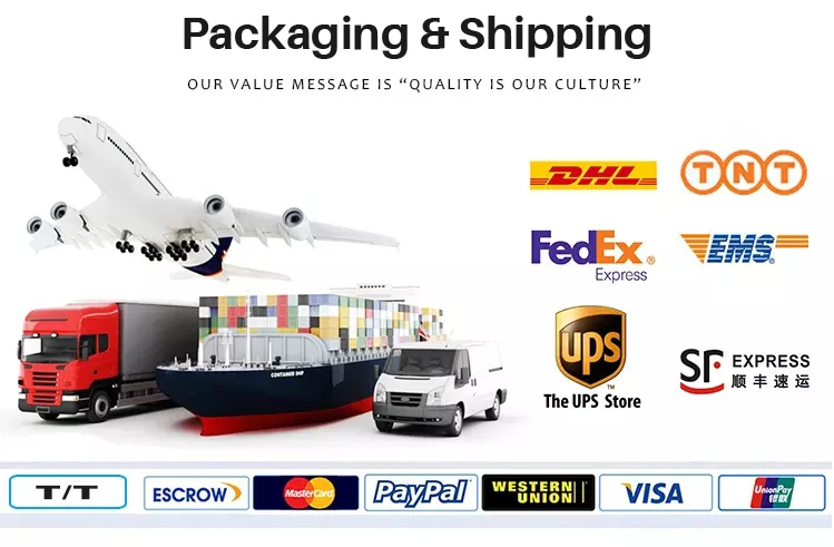 A: According to your requirement, different shipping service providers can be chosen, such as FEDEX, DHL, TNT and so on;by air or sea. Shipping cost depends on the shipping routes, product weight and volume, and location of your area. After delivering goods,we will send you the tracking number promptly.