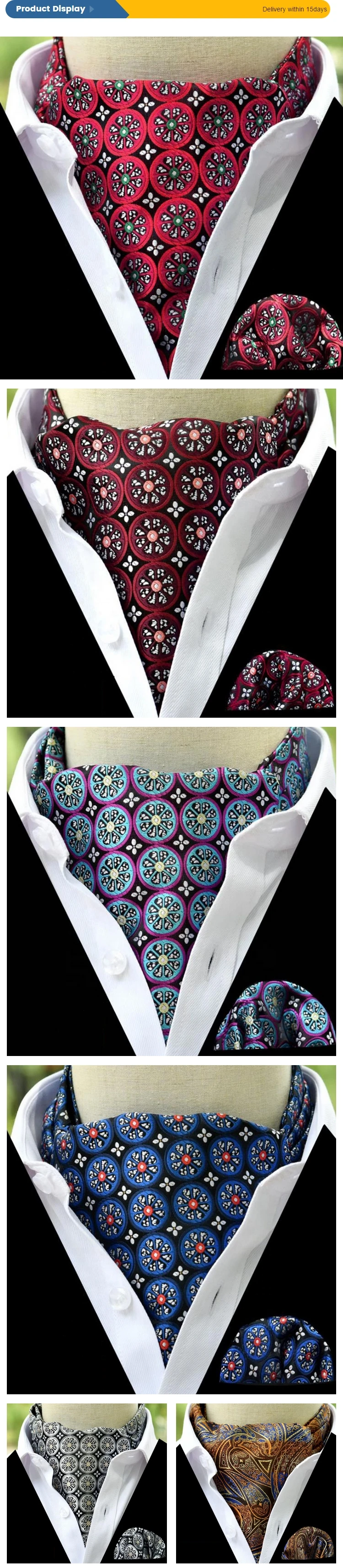 Оптовая продажа Мужской Ретро галстук с цветочным дизайном из полиэстера ascot и карманный квадратный