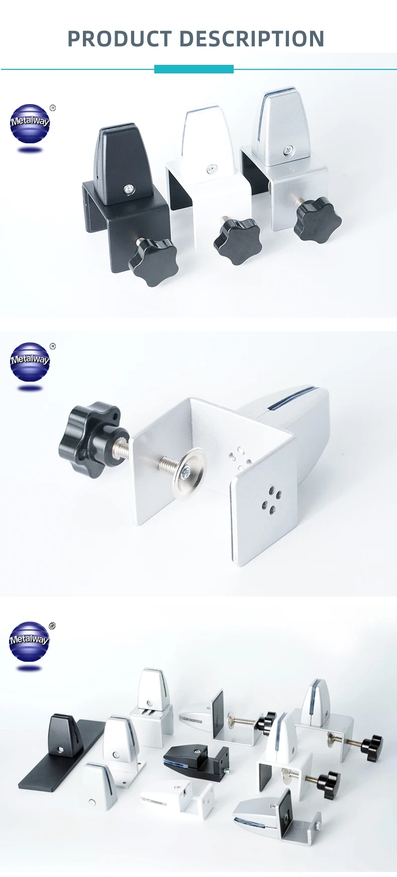 Metalway Hardware Manufacturer is a modern scientific and trading enterprise which integrating design, production and sales. Metalway specialized in shower hinge, glass door pull handle, fixing clamp, sliding door wheels, furniture legs, advertising screw, handrail and hardware fitting.